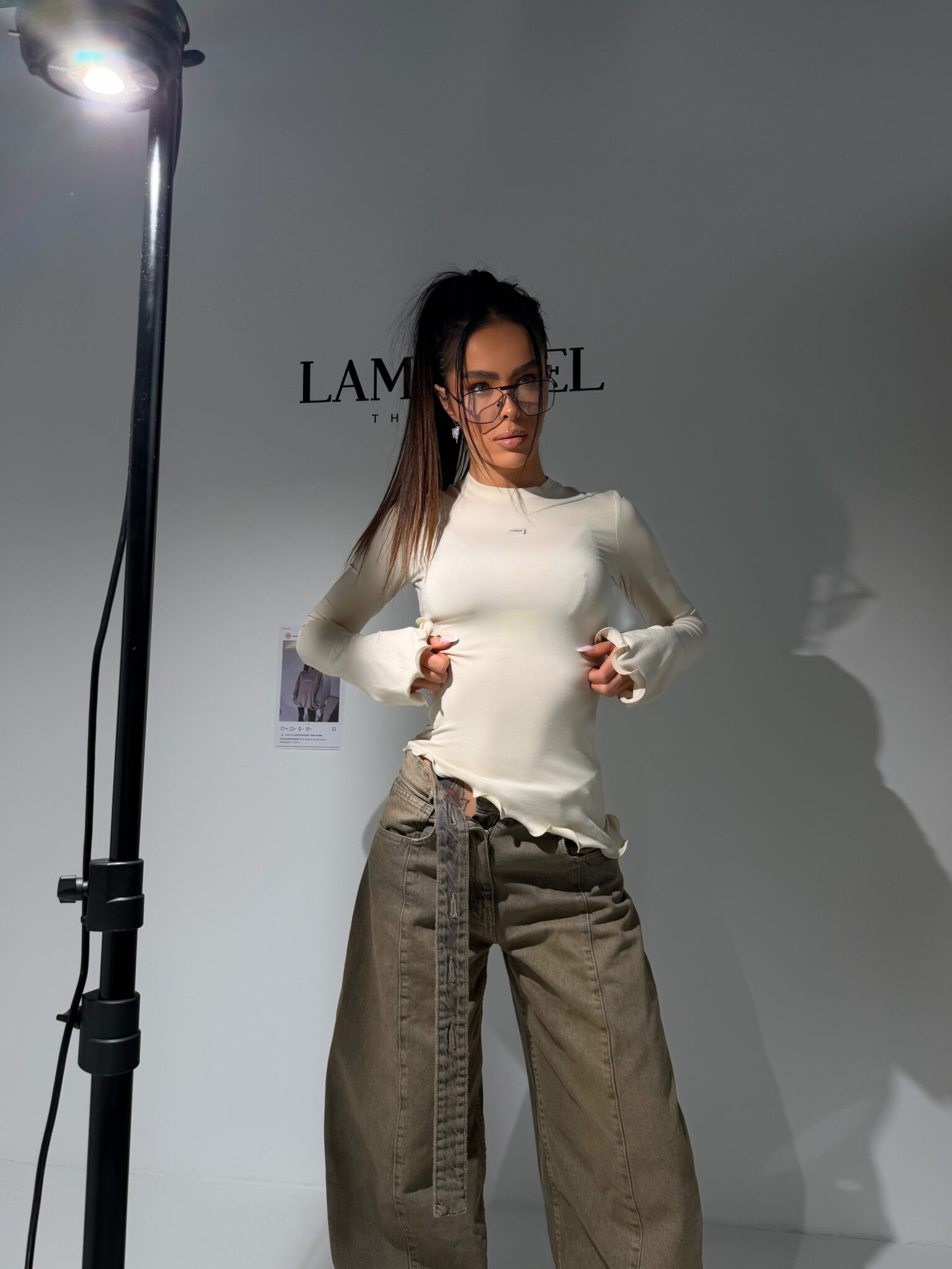 Utility Style: Przełam romantyczny charakter topu, zestawiając go z szerokimi spodniami typu cargo lub jeansami w odcieniach ziemi (np. oliwkowym lub brązowym). To połączenie delikatności z surowym stylem miejskim.